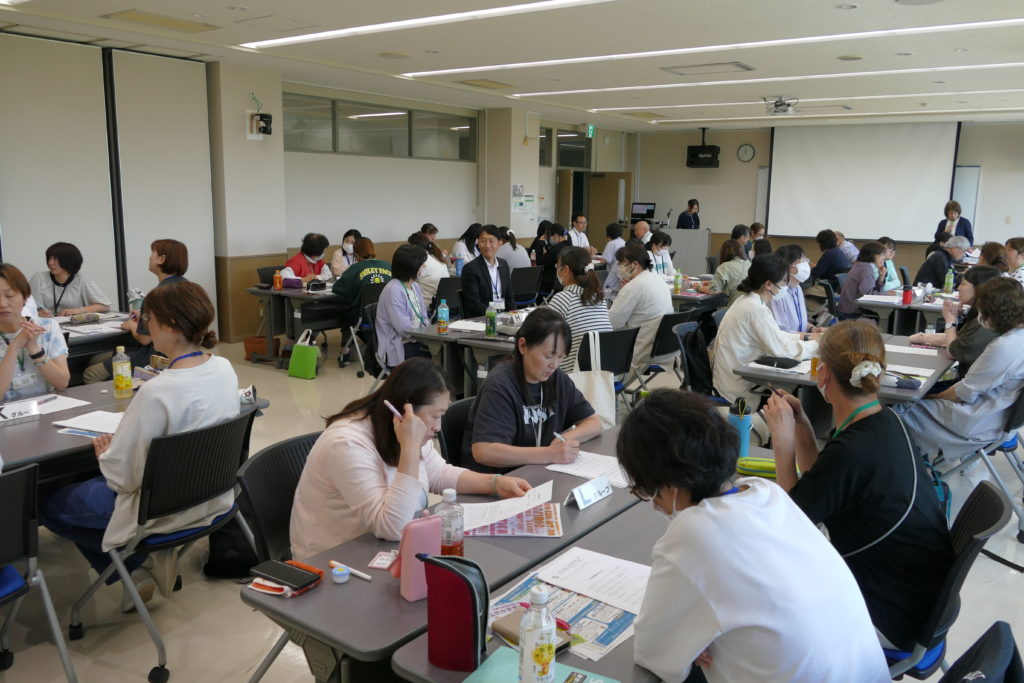 講義に引き続き、櫻氏にご指導いただきました。「自分の子どもの頃に親や周りの大人に意見を聴くことなく物事を決められた経験」について振り返り、その時の気持ちについて考えたり、「自分が子どもならどんな人に気持ちや考えを聴いてほしいと思うか」について、グループで意見を交わしたりしました。最後に、2人1組で学童クラブを利用する子どもと支援員の役に分かれロールプレイングを行い、感想を共有しました。忘れていた子どもの頃の気持ちを思い出し、子どもとの関わりについて理解を深めました。グループ内の話も弾み、様々な立場の方と交流する有意義な時間となりました。