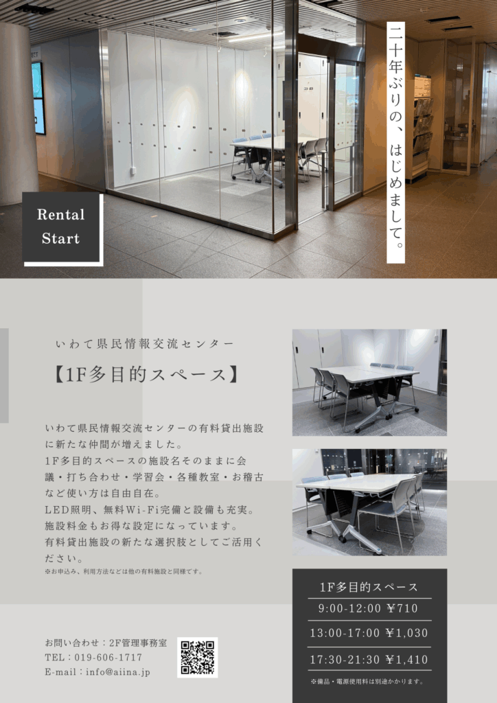 アイーナ1階に、あなたの「やりたい」を叶える『多目的スペース』でができました!